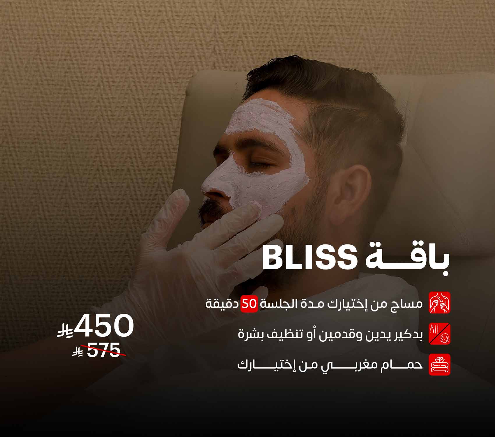 استمتع بجلسة مساج، حمام مغربي، وخدمة إضافية من اختيارك، بسعر استثنائي 450 ريال فقط!